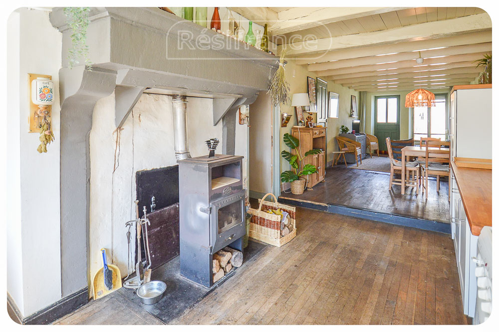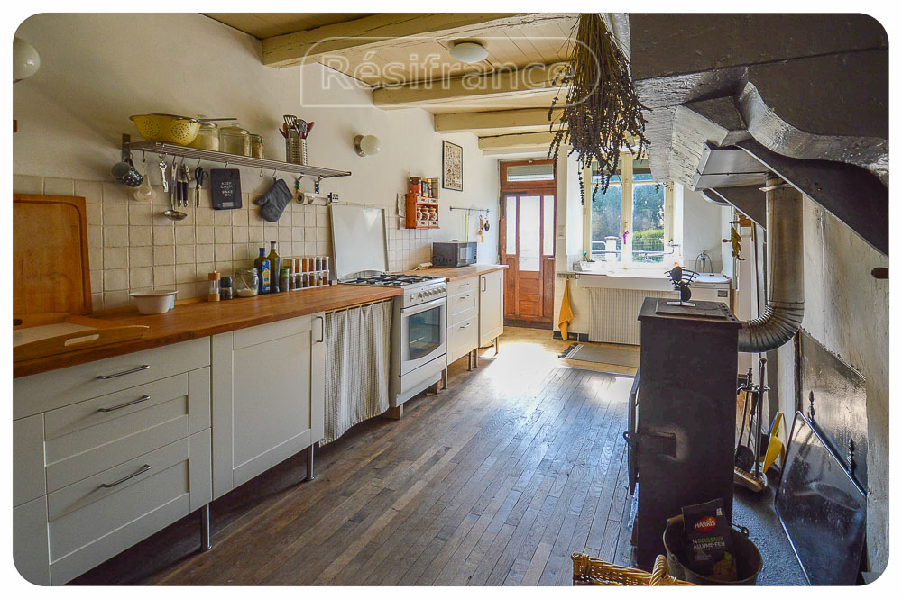 Élément authentiques dans la maison: Belle cheminée en pierre dans la cuisine. Différentes chambres avec poutres apparentes. Plusieurs beaux planchers en bois dans la maison. La maison a des murs en pierre.