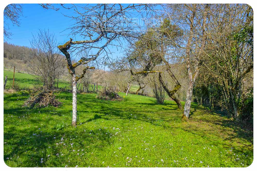 La maison est une Maison de village mitoyenne de 2 côtés avec un cour devant et jardin spacieux à l'arrière de la maison, avec des arbres fruitiers et magnifique vue sur le village et les collines. La surface totale du terrain est de 1347 m²
